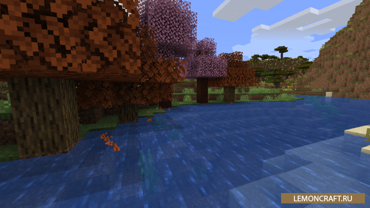 Мод на падающие листья Falling Leaves добавляет в игру интересную анимацию падающих с деревьев листьев, это сделает игру Майнкрафт немного живее и реалистичнее.